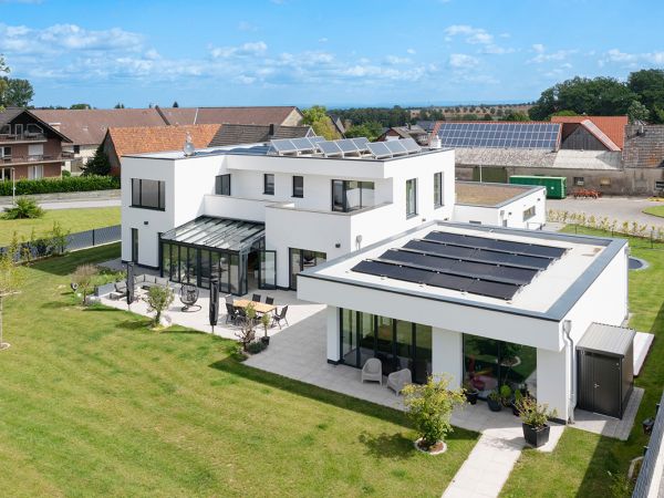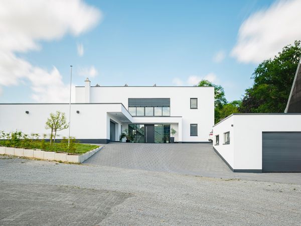 Ein gelungenes Beispiel vom Zusammenspiel von gehobenem Wohnen, Energieeffizienz und schlichter, eleganter Ästhetik. Wir stehen Ihnen gerne zur Verfügung, um mit Ihnen Ihr Traumhaus zu entwerfen! Zögern Sie nicht, uns für weitere Informationen zu kontaktieren!