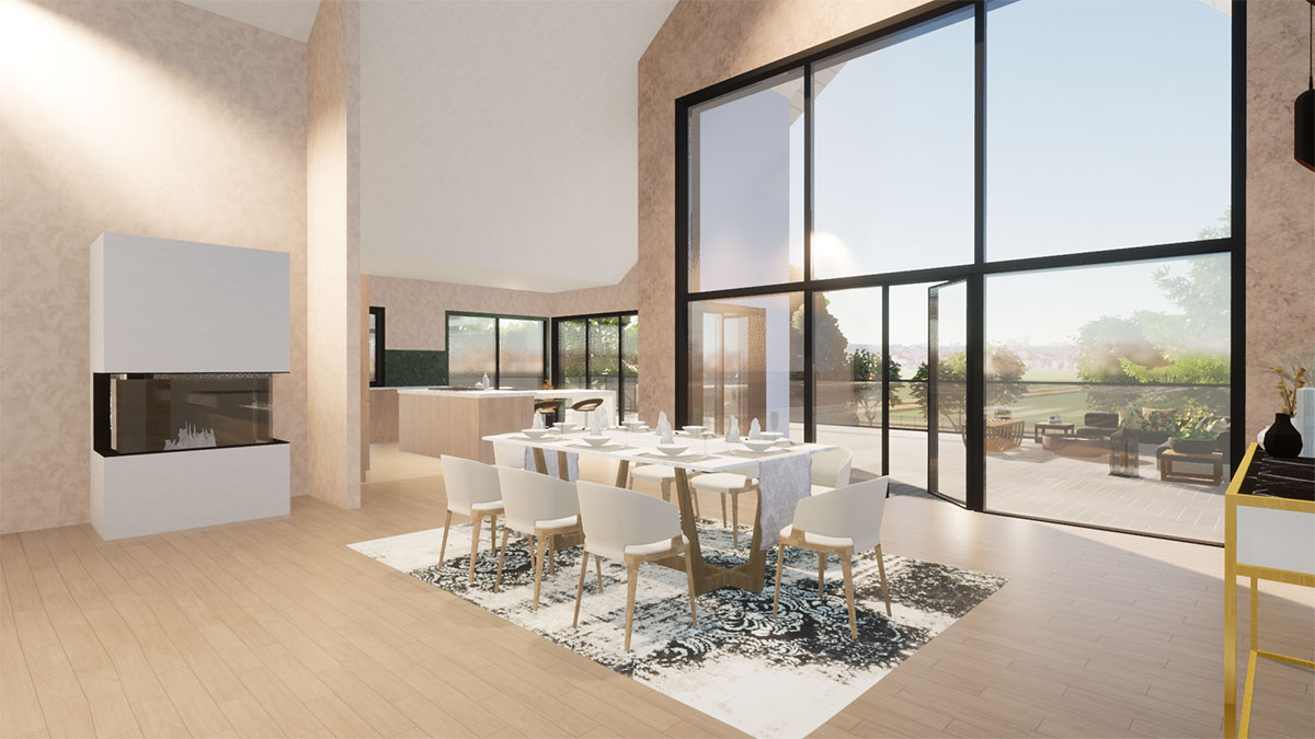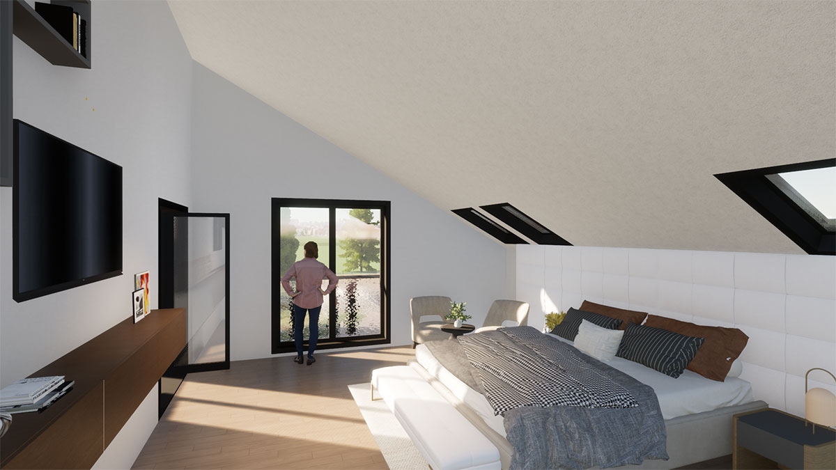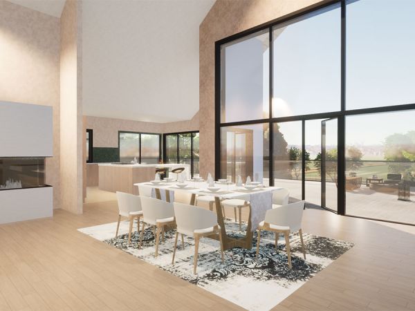 Die großzügige Wohnfläche von ca. 360 m² bietet Raum für vielfältige Aktivitäten, während das Innere dank geschickter Gestaltung lichtdurchflutet und offen bleibt. Der Bestand ist malerisch in die umgebende Landschaft integriert.